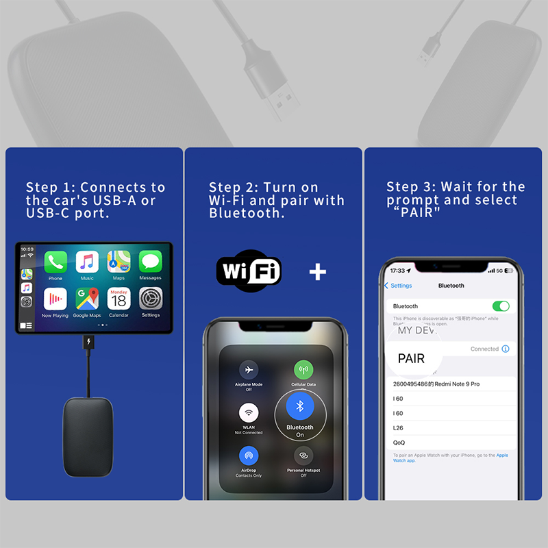 Caractéristique originale de Carplay:Carplay de câble à Carplay sans fil