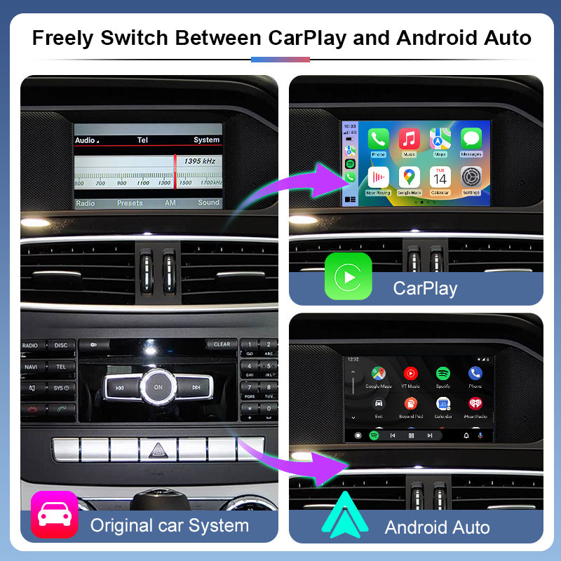 CarPlay sans fil, Android Auto, MirrorLink pour Mercedes Benz Classe B/C/E, GLA, CLA, GLK, SLK, CLS, W204, W176, W246, prise en charge de la commande vocale et de la caméra