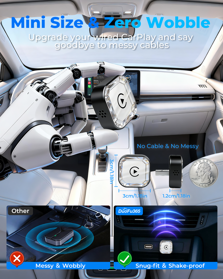 Dongle Mini USB Plug & Play pour mise à niveau CarPlay sans fil et Android Auto pour iPhone avec connexion automatique rapide et stable, ajustement universel