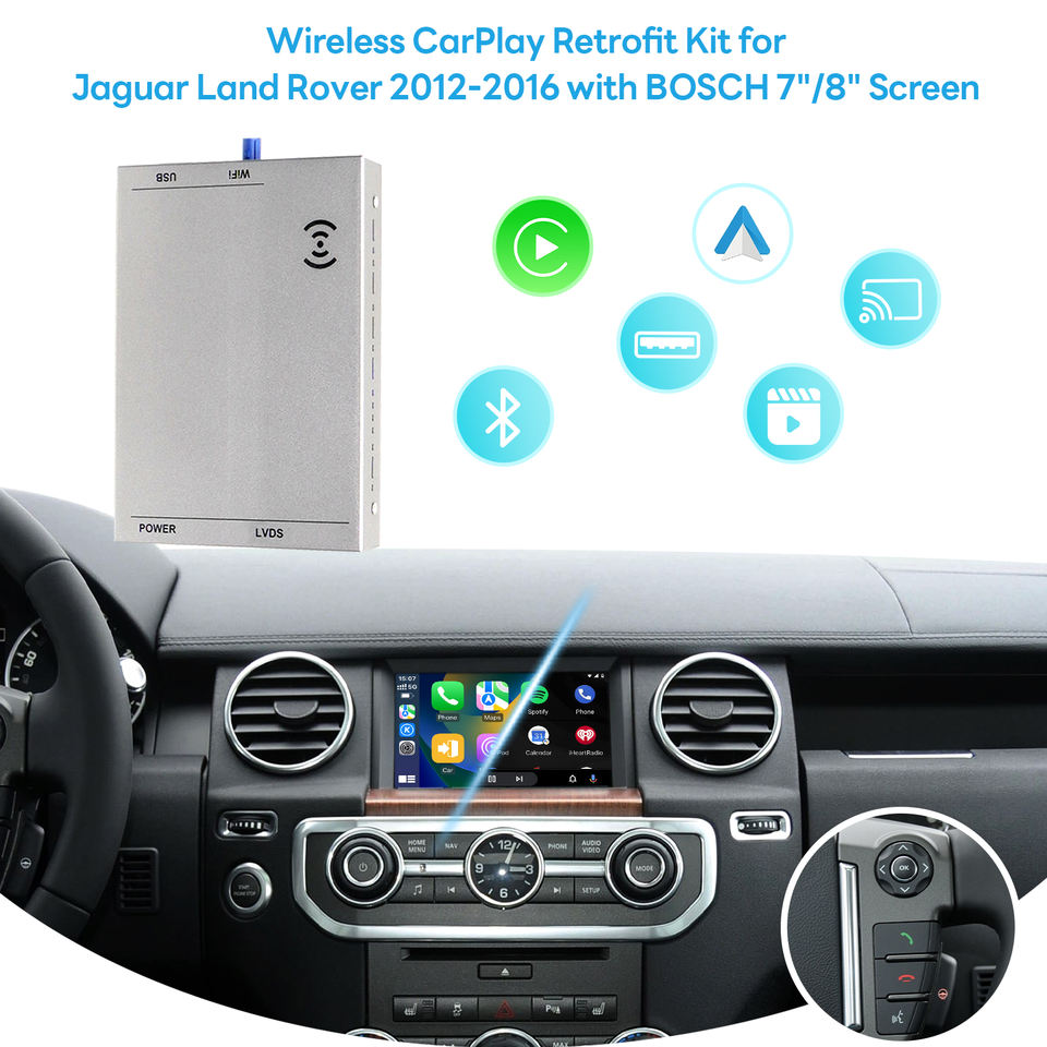 Interface sans fil Carplay Android Auto pour Land Rover Evoque Jaguar OEM Headunit Bosch 8 Inch Support AirPlay MiraCast Module