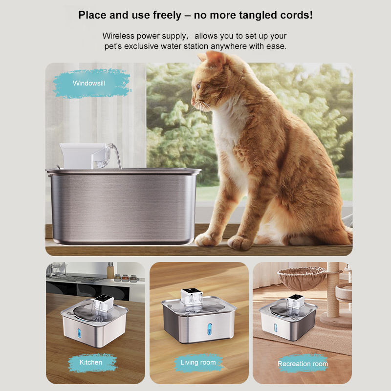 Fontaine d'eau de chat intelligent sans fil