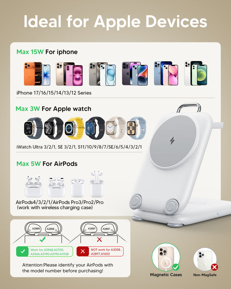 Station de recharge sans fil 3 en 1, Multifonctionnel, Sans fil