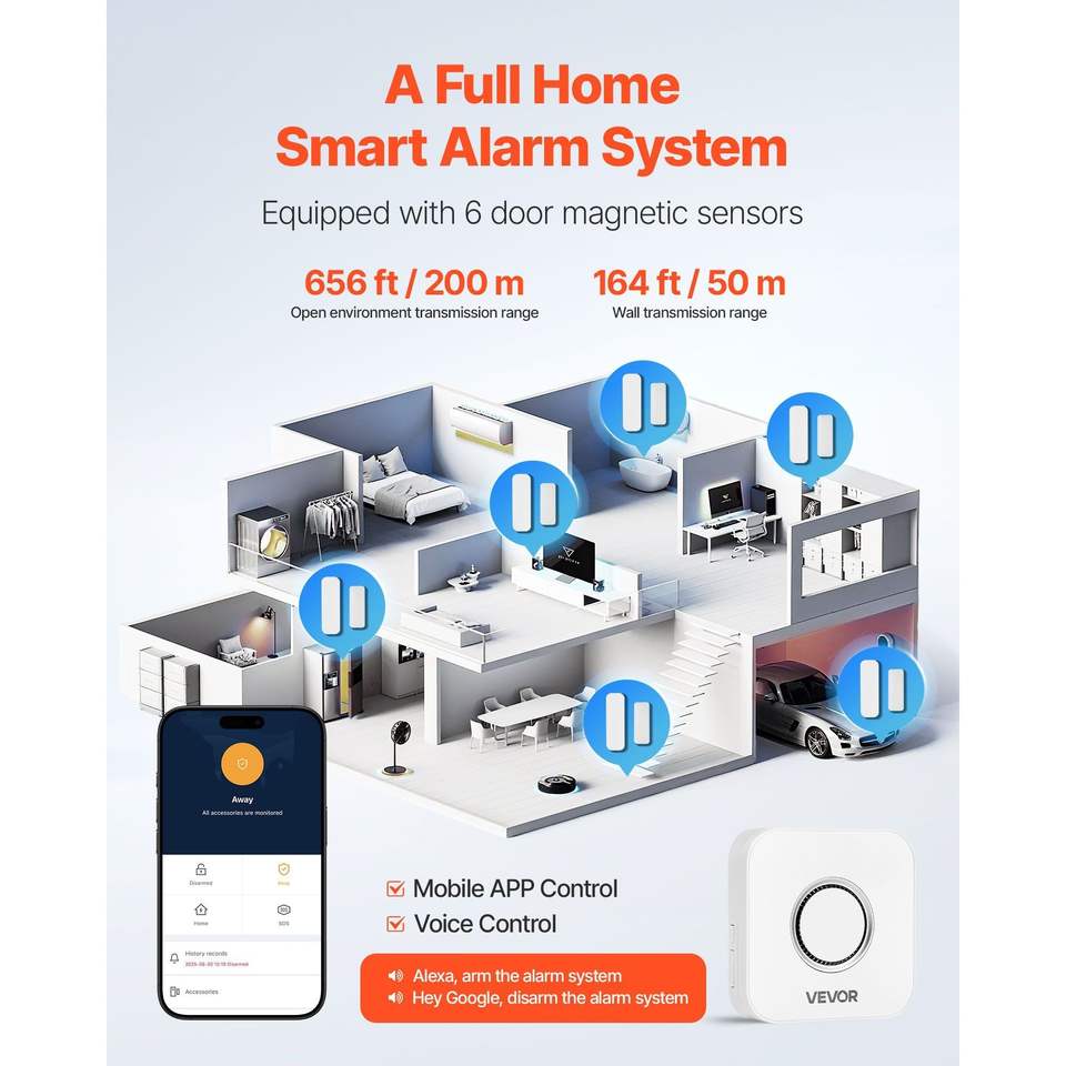 Carillon de porte sans fil avec 6 capteurs de contact et 1 système d'alarme de porte récepteur