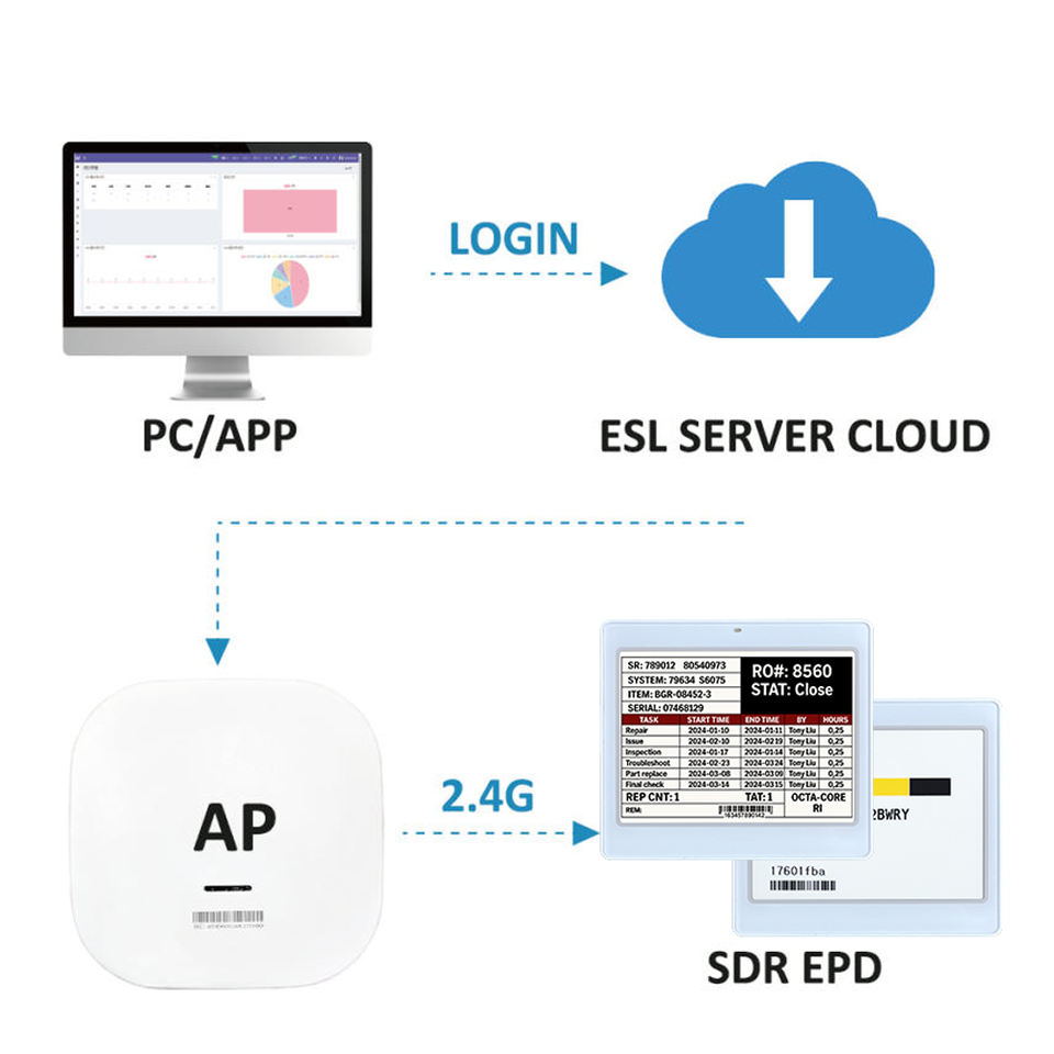 Kit de démonstration d'étiquettes électroniques sans fil pour entrepôt au Royaume-Uni, étiquettes de prix numériques à encre électronique BLE, système d'intégration API logicielle sécurisée