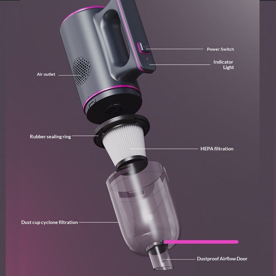 Technologie du cyclone, Nettoyage facile, Léger, Portable, Filtre lavable, Humide sec propreCaractéristique