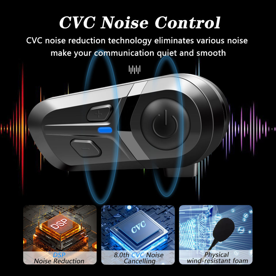 Casque d'intercommunication sans fil compatible avec Siri Casque de moto Casque Bluetooth Casque de qualité sonore Hi-Fi étanche