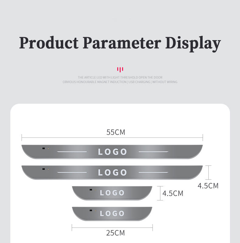 Plaque de seuil de seuil de porte de voiture sans fil à induction magnétique à Led coloré Lumière de plaque de seuil de porte de voiture Luz de bienvenida