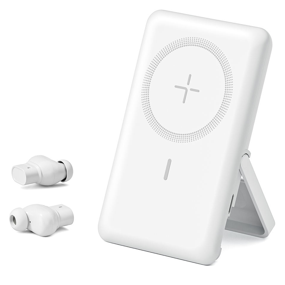 Banque d'énergie magnétique sans fil avec écouteurs True Wireless et support mobile Batterie 5000MAH Sac à dos 18W Chargement rapide pour iPhone