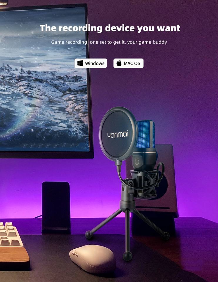 Condenser Microphone, USB Microphone, With RGB lighting, Portable, Noise Cancelling, With LED Lights, Light-weightFeature