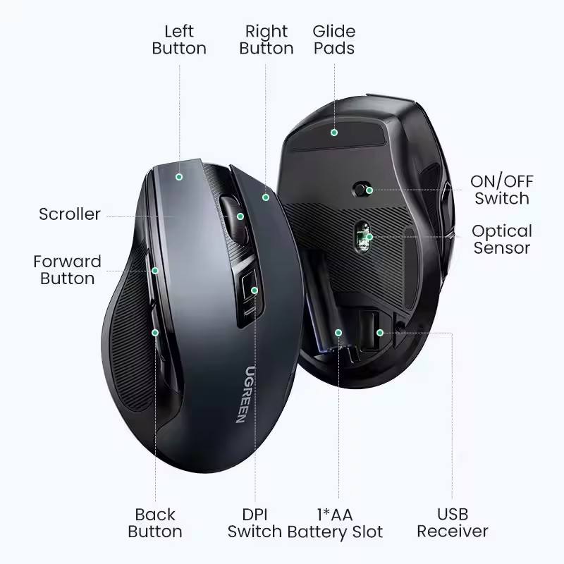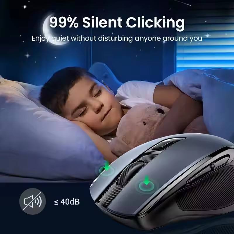 Souris sans fil UGREEN 6 boutons silencieux Bluetooth 5.0 et 2.4G, mini souris sans fil USB avec récepteur, 5 niveaux DPI 4000DPI pour PC portable