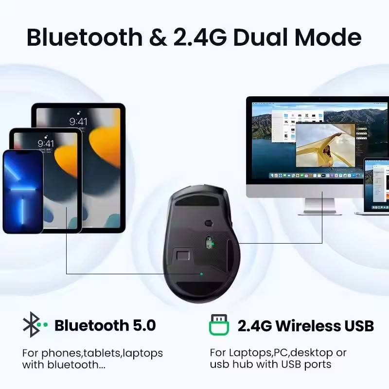 Souris ergonomique sans fil avec double mode 2,4G et Bluetooth