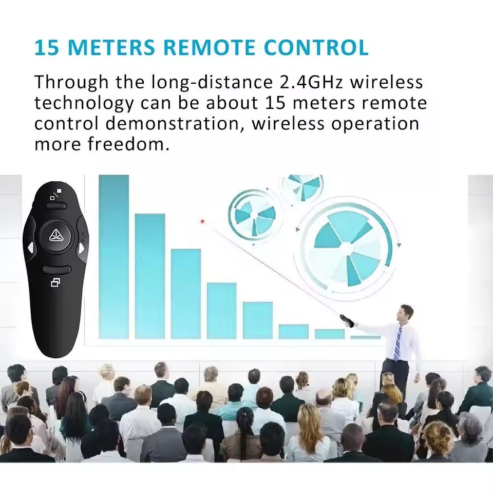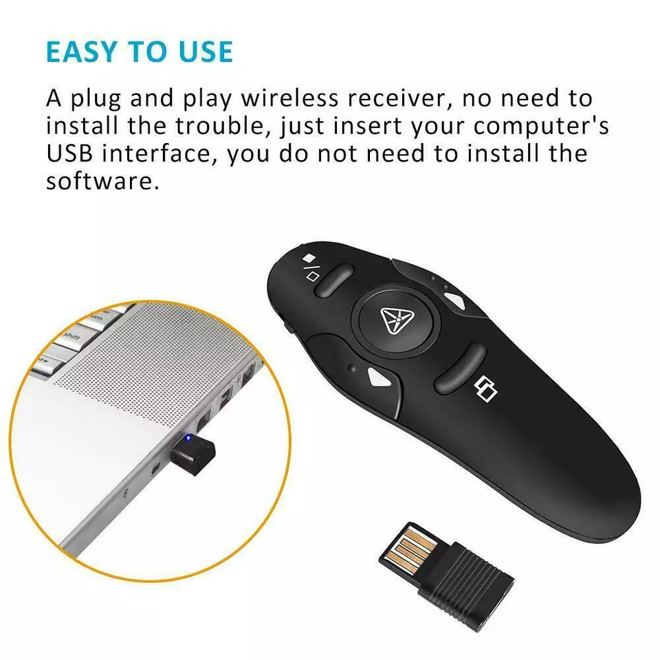 Présentateur sans fil rouge portée de 15m, présentateur de télécommande PowerPoint 2.4 GHz, présentation pour PPT/Google Slides/Windows/Mac OS