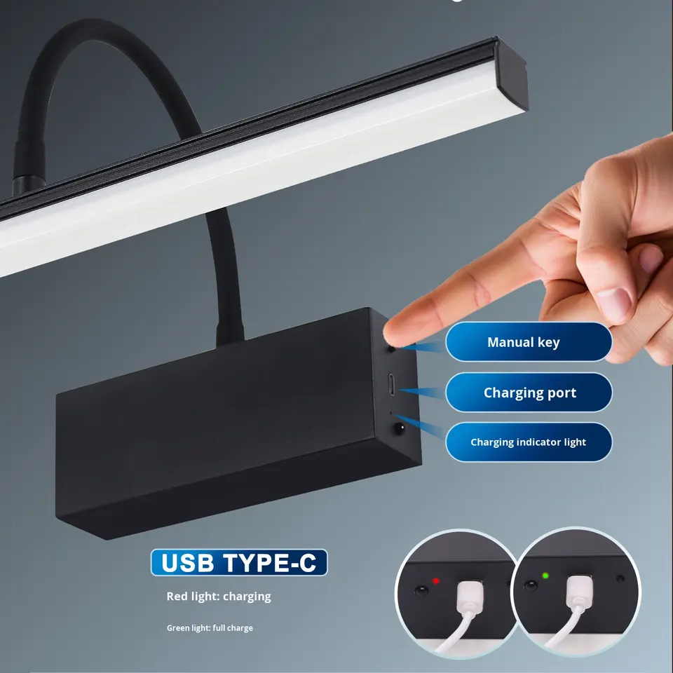 Lampe d'image sans fil rechargeable Lampe murale LED à piles Télécommande Angle réglable Vanity Lights