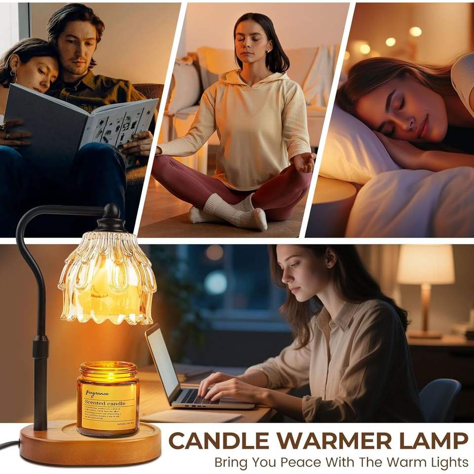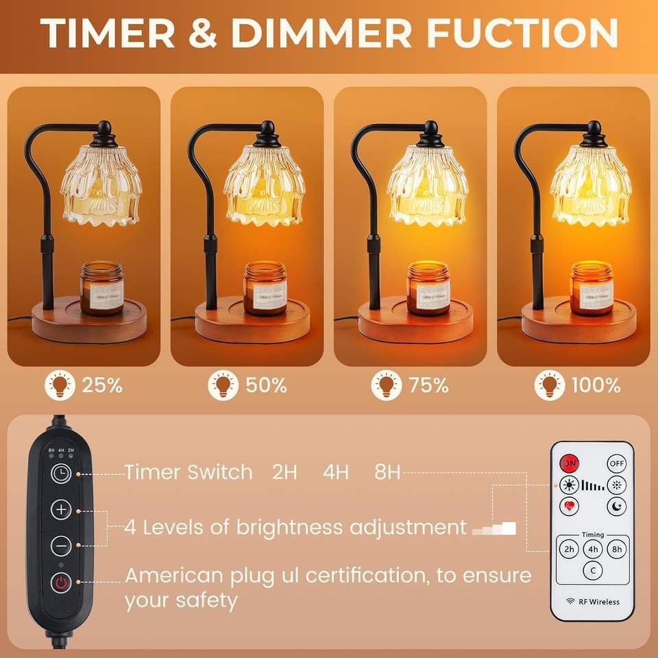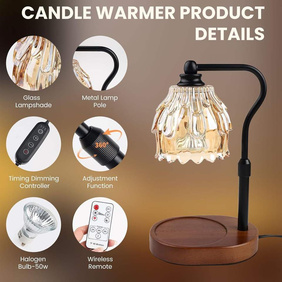 Lampe chauffe-bougie sans fil à télécommande, intensité réglable, avec minuterie, hauteur ajustable, pour bougies en pot et cires fondantes