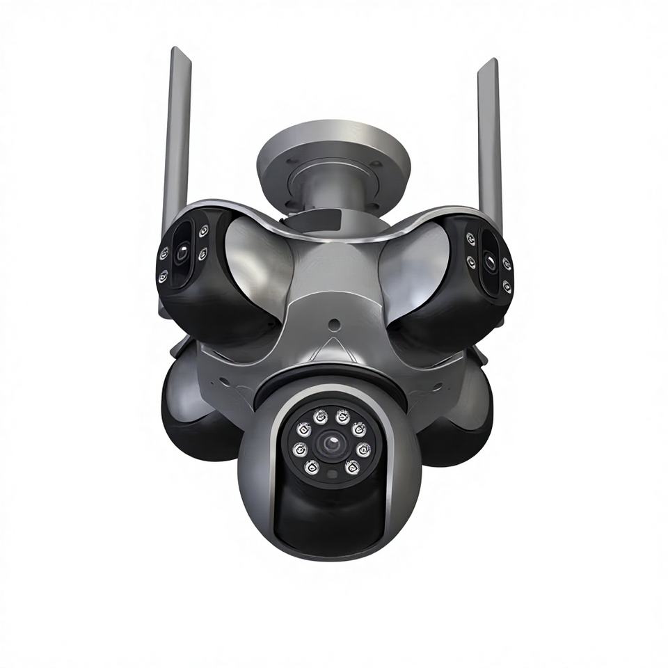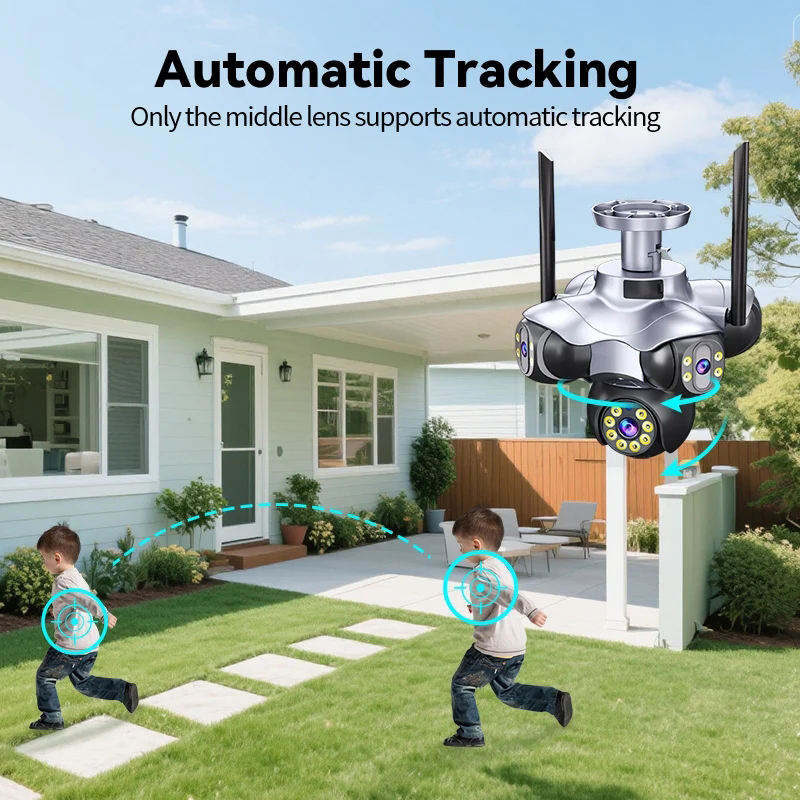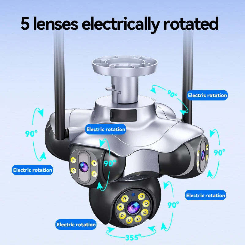 Caméra de sécurité sans fil à dôme, capteur CMOS 20MP, PTZ, IP66, étanche, H.265, rotation à 360°, 5 objectifs, 5 écrans