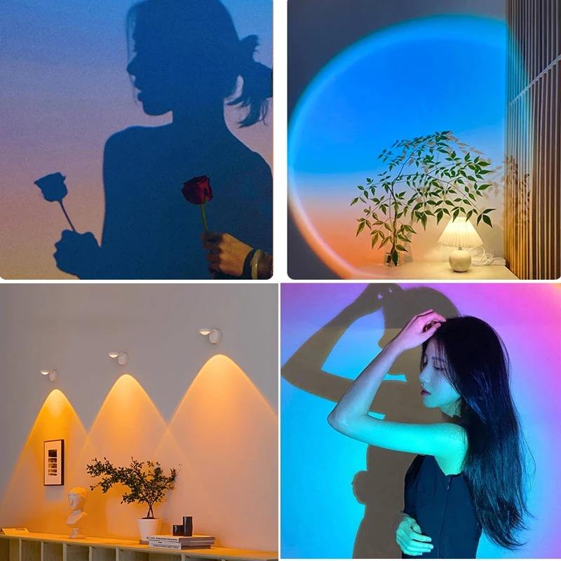 Lampe Coucher de Soleil Sans Fil, Projecteur de Lumière Nocturne, Décoration Murale pour la Maison, Lampe de Lecture pour Cuisine, Vitrine, Placard, Chambre, Camping-car