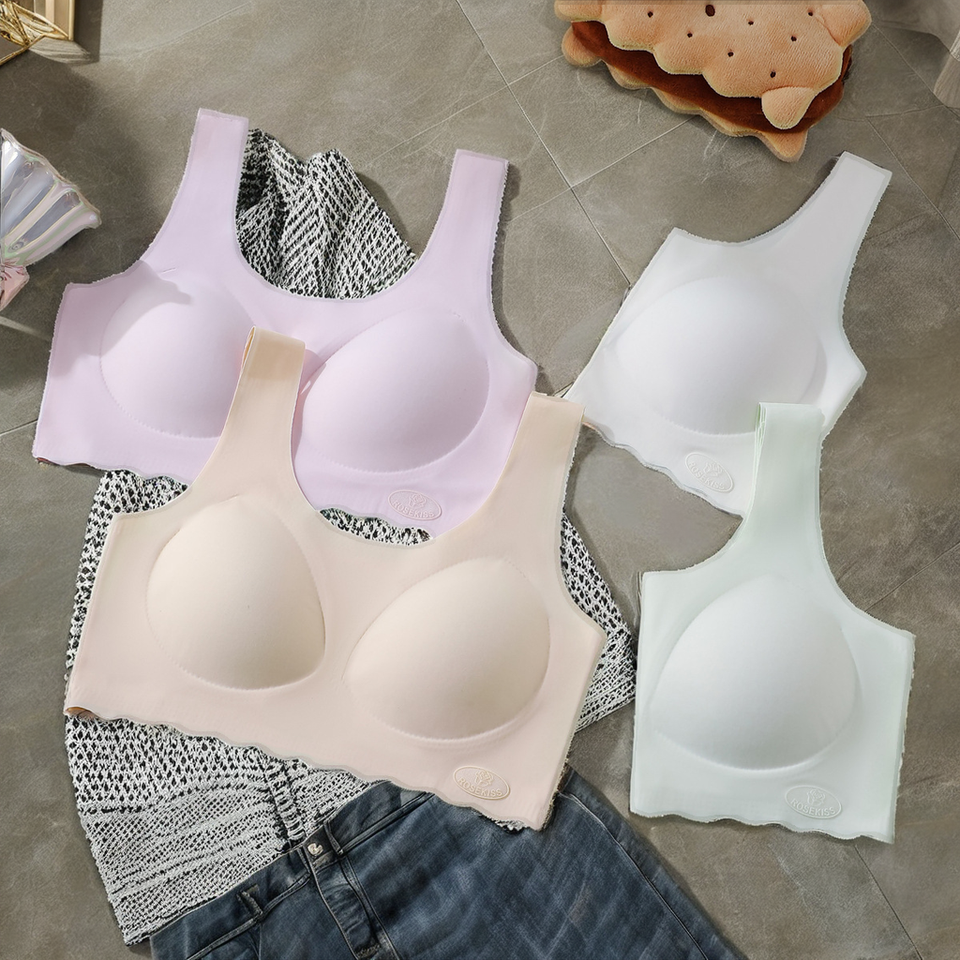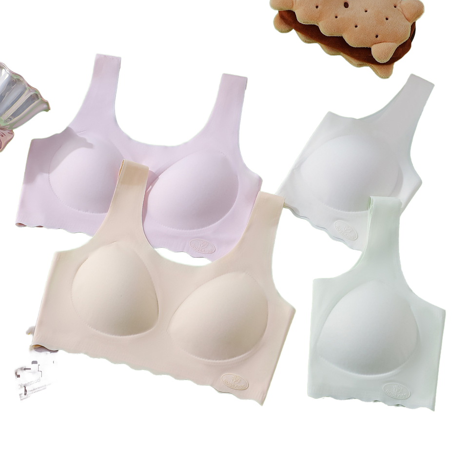 Soutien-gorge sans fil mince monobloc en nylon solide pour adolescentes, avec accessoire push-up, confort et soutien supérieur, avec logo sur la coque