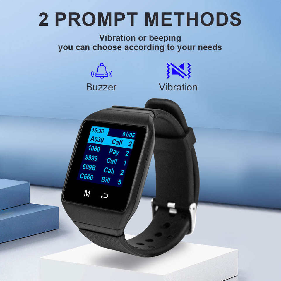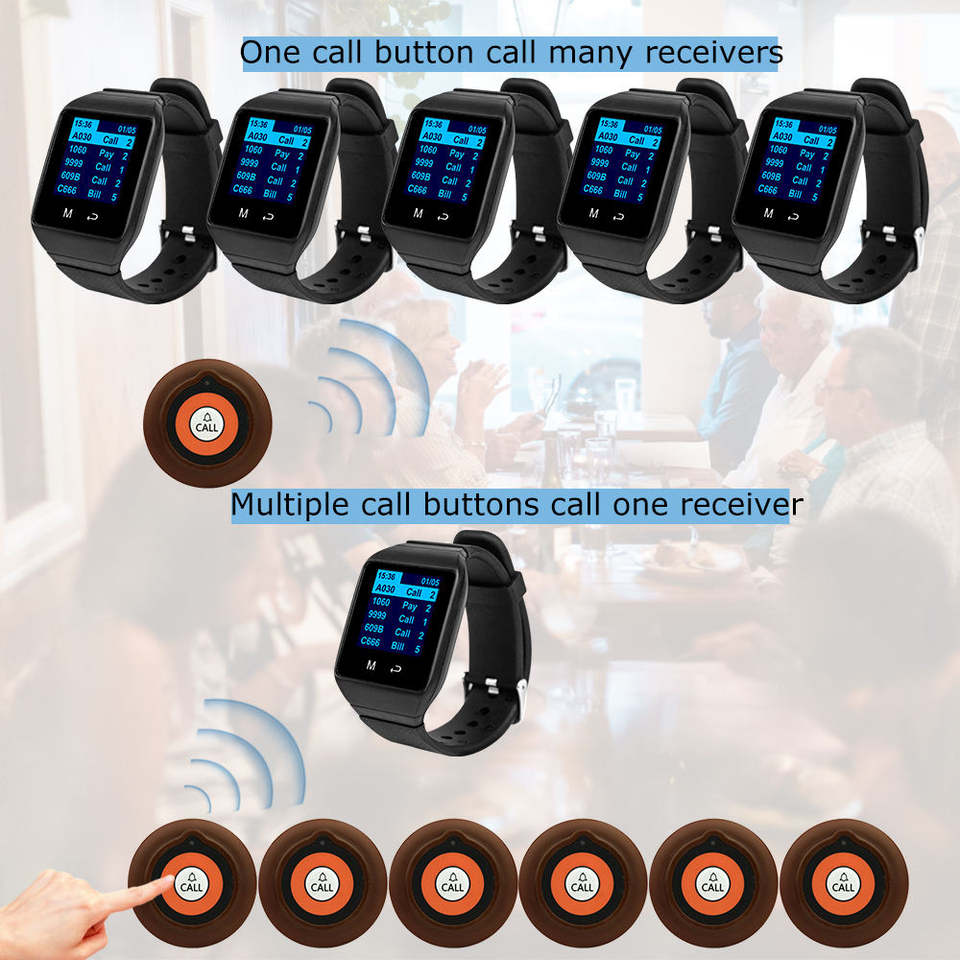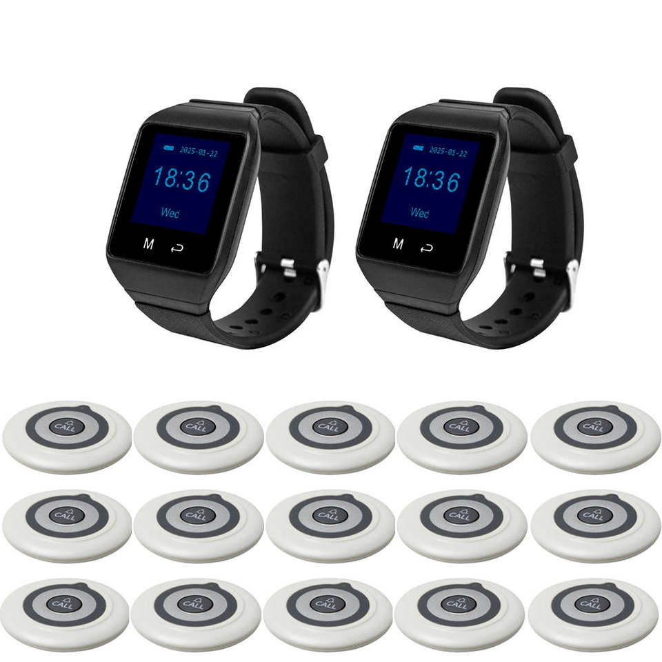 Système d'appel sans fil pour serveurs - 15 boutons de table + 2 pagers montres et buzzer | Restaurant/Hôtel/Bar