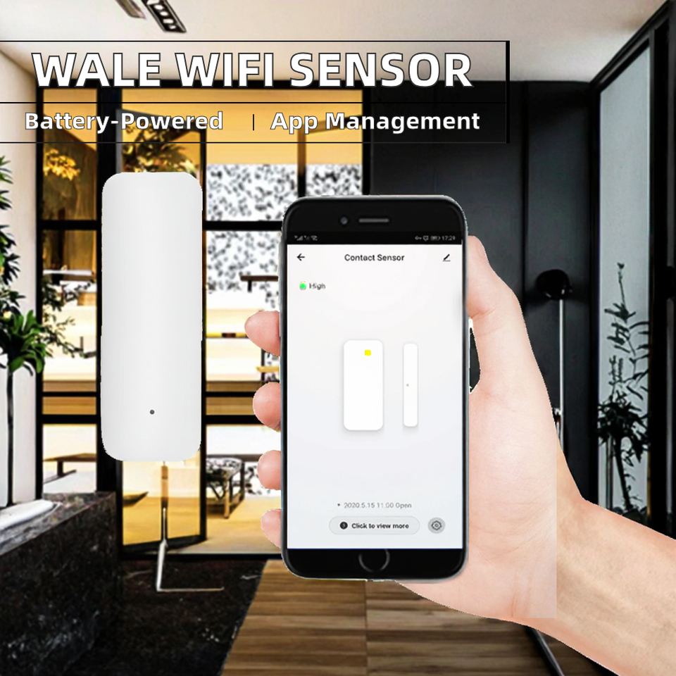 Détecteur de mouvement magnétique Wi-Fi sans fil pour usage hôtelier, alimenté par piles, design barre, en plastique, alarme universelle pour porte/fenêtre