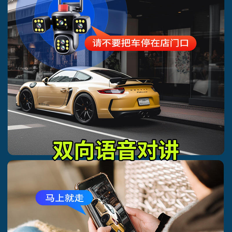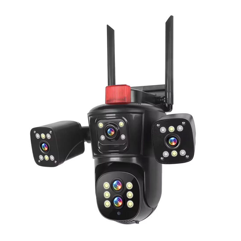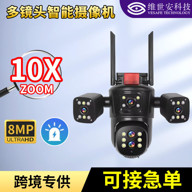 Caméra WiFi sans fil 8MP, 4 vues, PTZ, vision nocturne HD extérieure, couleur intégrale, avec zoom 10x et portée infrarouge de 30M