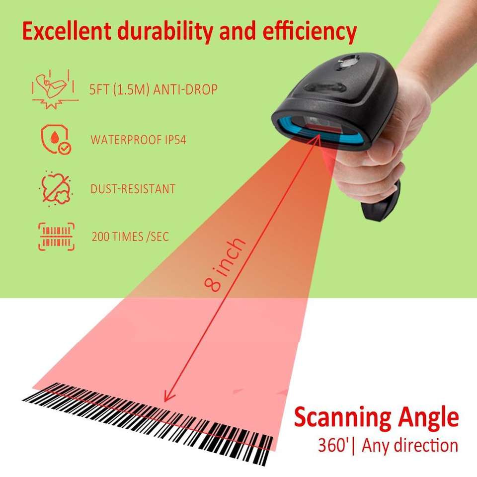 Lecteur de codes-barres portable sans fil Wifi Bluetooth USB 1D 2D Lecteur de codes QR Compatible avec le système POS pour la vente au détail Supermarché Café