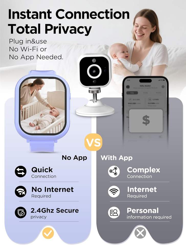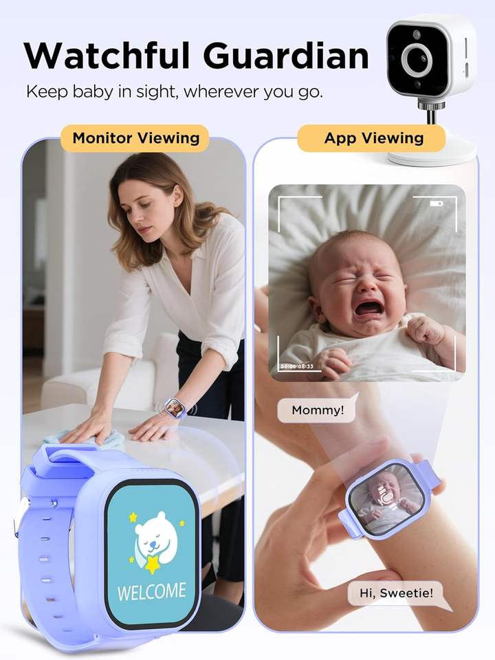 Caméra de surveillance pour bébé sans fil à porter au poignet avec vision nocturne et détection de pleurs et de température, caméra de sécurité vidéo pour bébé
