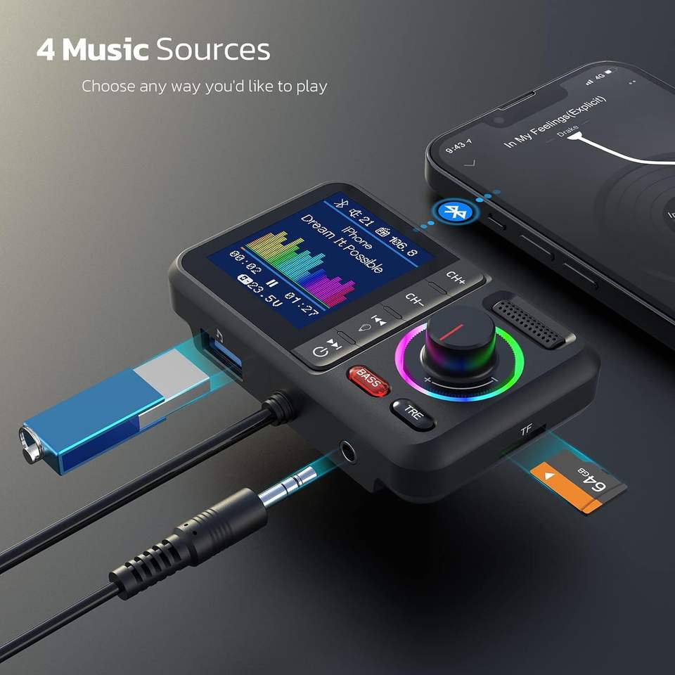 Adaptateur de voiture à connexion sans fil avec installation sur grille d'aération, suppression du bruit DSP, chargeur de voiture, émetteur radio FM sans fil