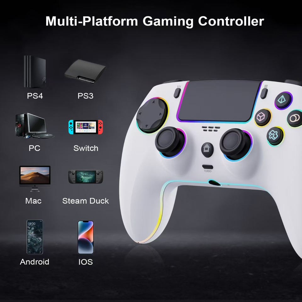 Manette de jeu sans fil avec lumières RGB, double vibration, six axes, batterie 1200 mAh, fabriquée en Chine
