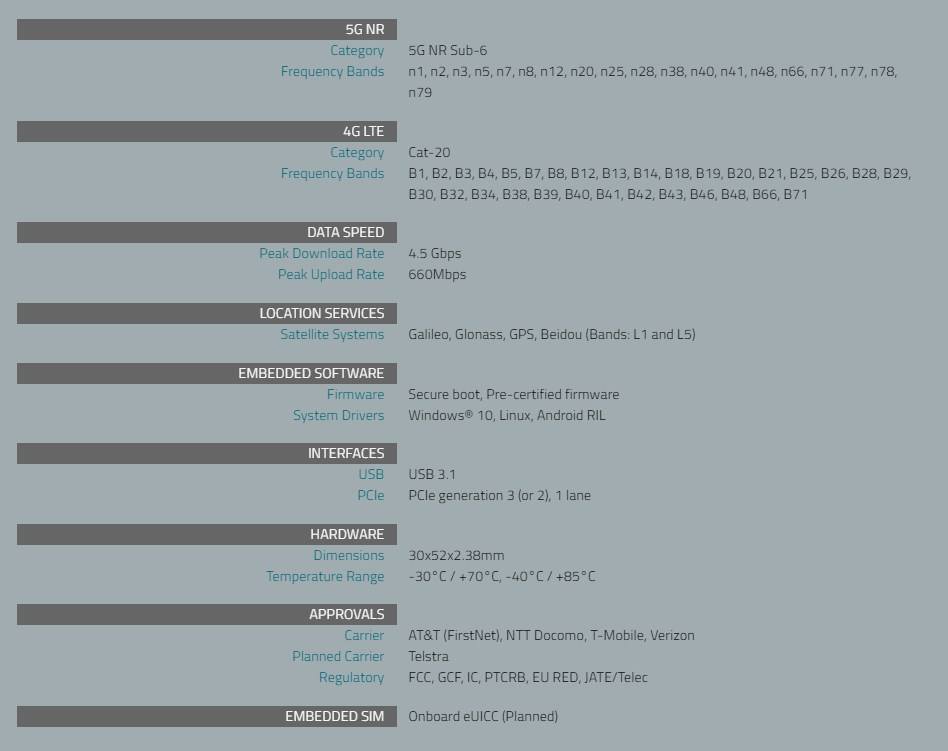 Modem internet sans fil-5G-Sierra 5G EM9191 EM9190 5G NR Sub-6 GHz Module