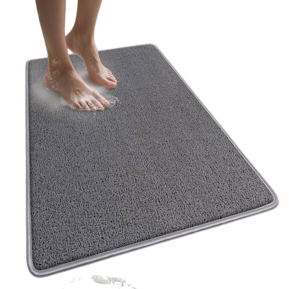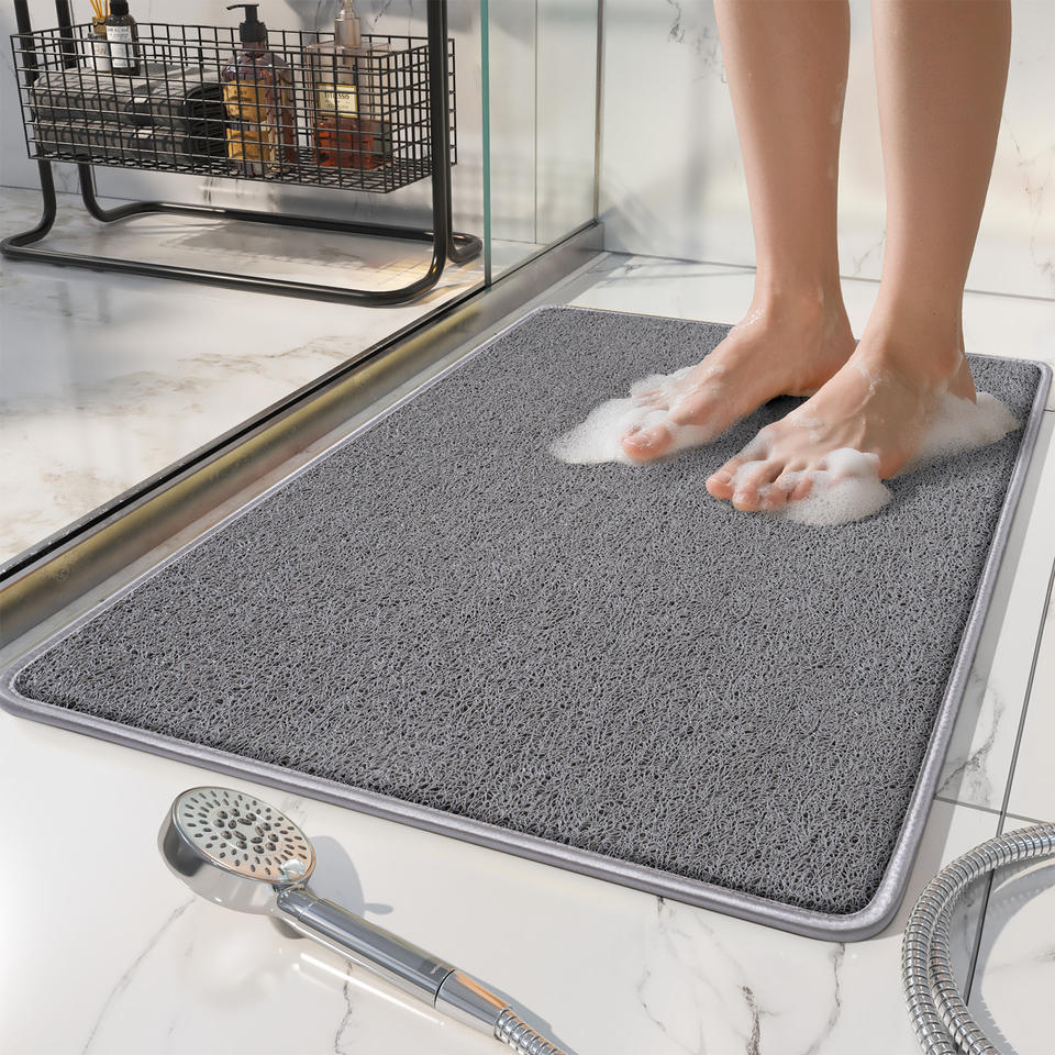 Tapis de salle de bain rectangulaire en boucle de soie câblée, gris, antidérapant, en PVC, design minimaliste, tapis de douche, tapis de sol imperméable