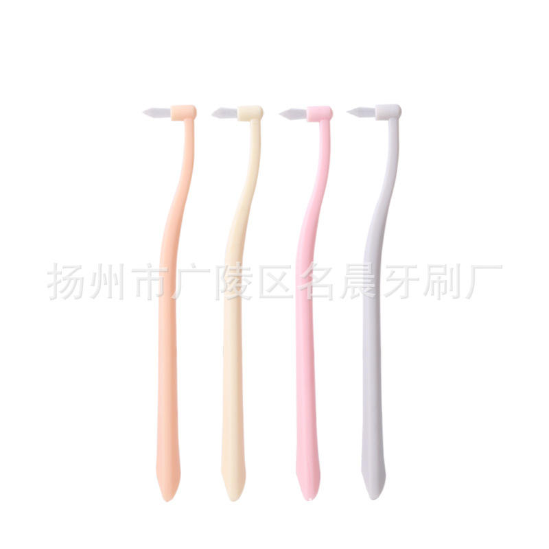 Orthodontic single-bundle toothbrush: yellow, pink, orange, gray.color
