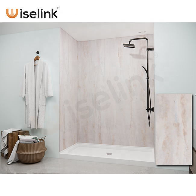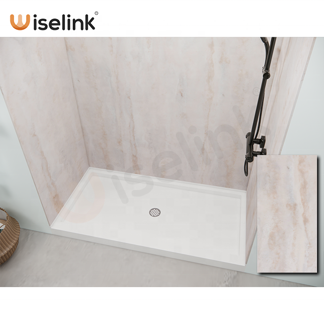 Wiselink Modèles personnalisés Surround de douche Modèle 3D Design Surface solide artificielle Panneau mural de douche pour hôtel Grande dalle