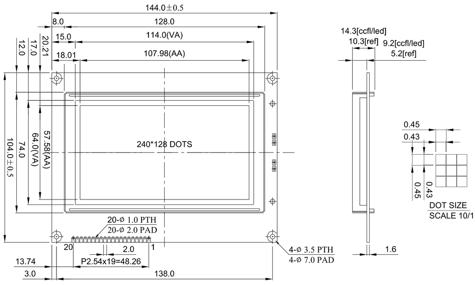 Dot Pitch:0.45 x 0.45mm