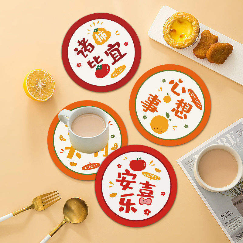 Wishful – dessous-de-plat rond en polyester, dessin animé orange, tapis isolant thermique, dessous-de-plat de table durable pour la maison et la cuisine