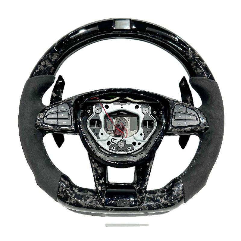 Volant de sport pour voiture en cuir et fibre de carbone forgée avec LED pour Mercedes Benz AMG W205 W204 W203 W212 W213 CLS W222 C300