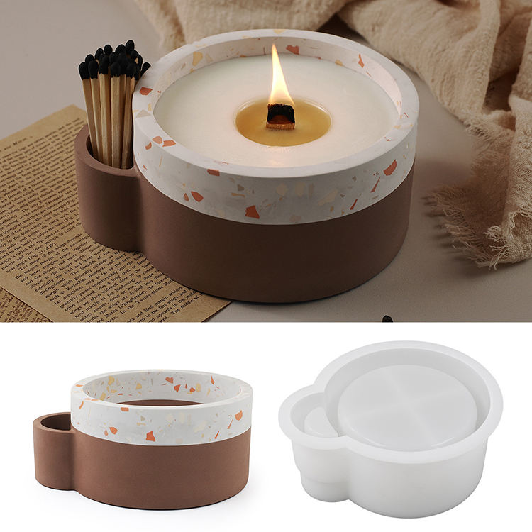 DIY With Match Hole Round Candle Jar Silicone Molds