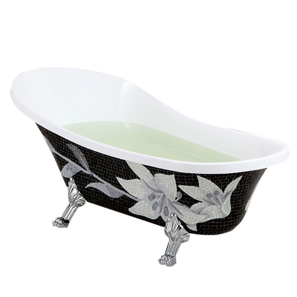 Petite baignoire ovale en acrylique, avec mosaïque surround italien, autoportante, pour salle de bain
