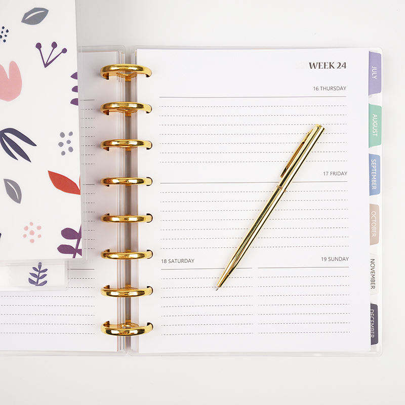 Avec vernis à l'huile Motif frais Disque de reliure Business Planner Spiral Agenda Custom Printing Black friday Sale 2023 Daily Planner