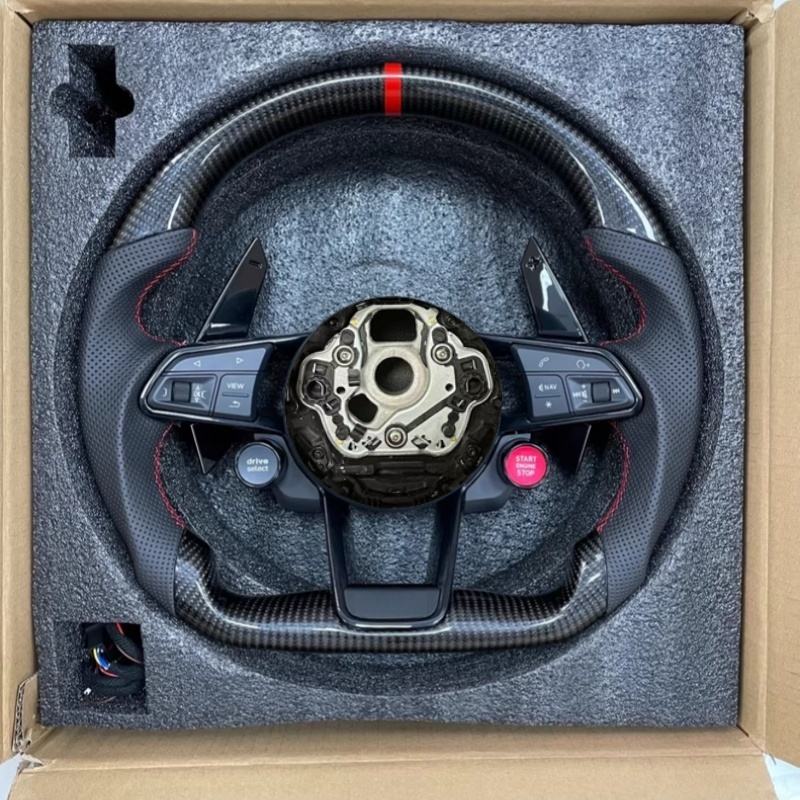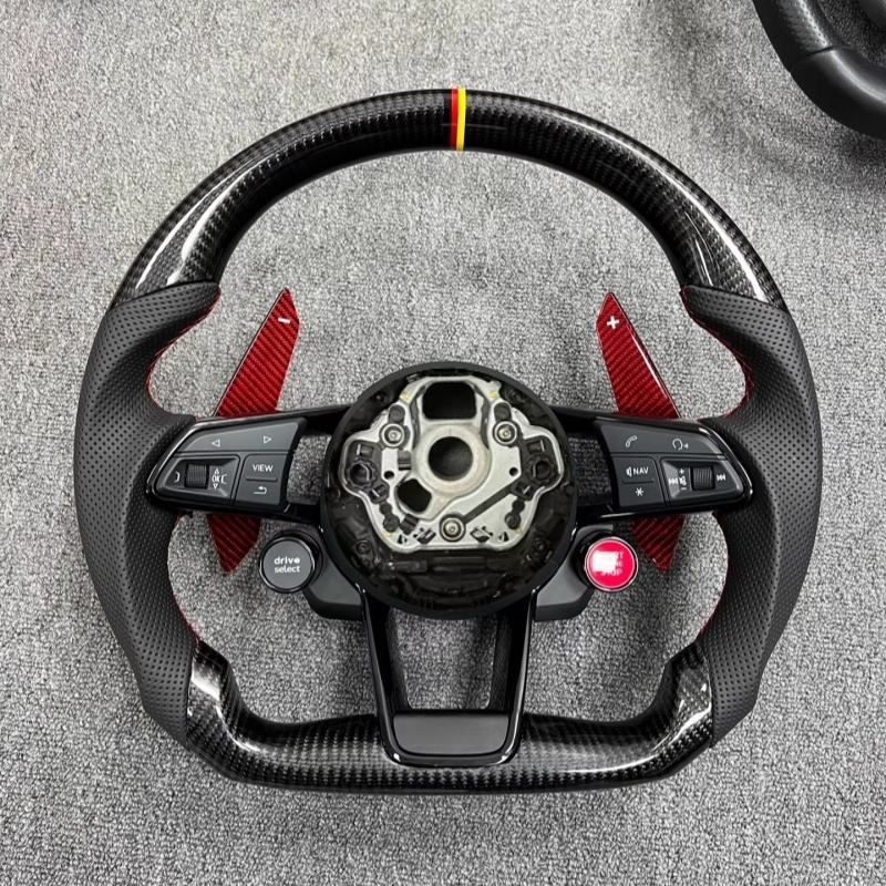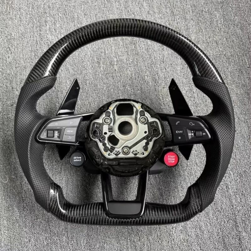 Volant en fibre de carbone semi-perforé avec bouton de démarrage R8 et sélecteur de mode de conduite pour Audi A3 A4 A5 A6 C7 C8 Q3 Q5 Q7 SQ5 SQ8 TTRS