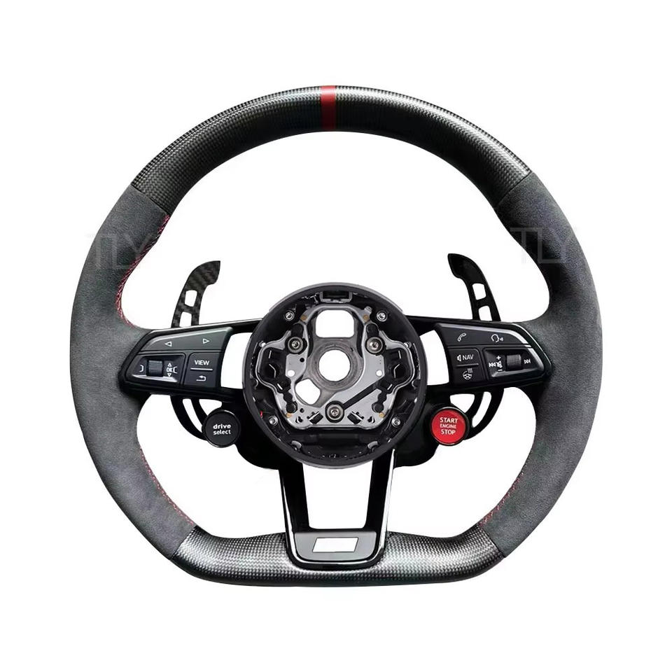 Volant Carbone Mi-Alcantara S-Line Avec Bouton de Démarrage pour Audi Q8 SQ8 A3 A4 B9 A5 B8 A6 C7 A7 S3 S4 RS3 RS5 RS7 RS6 C8