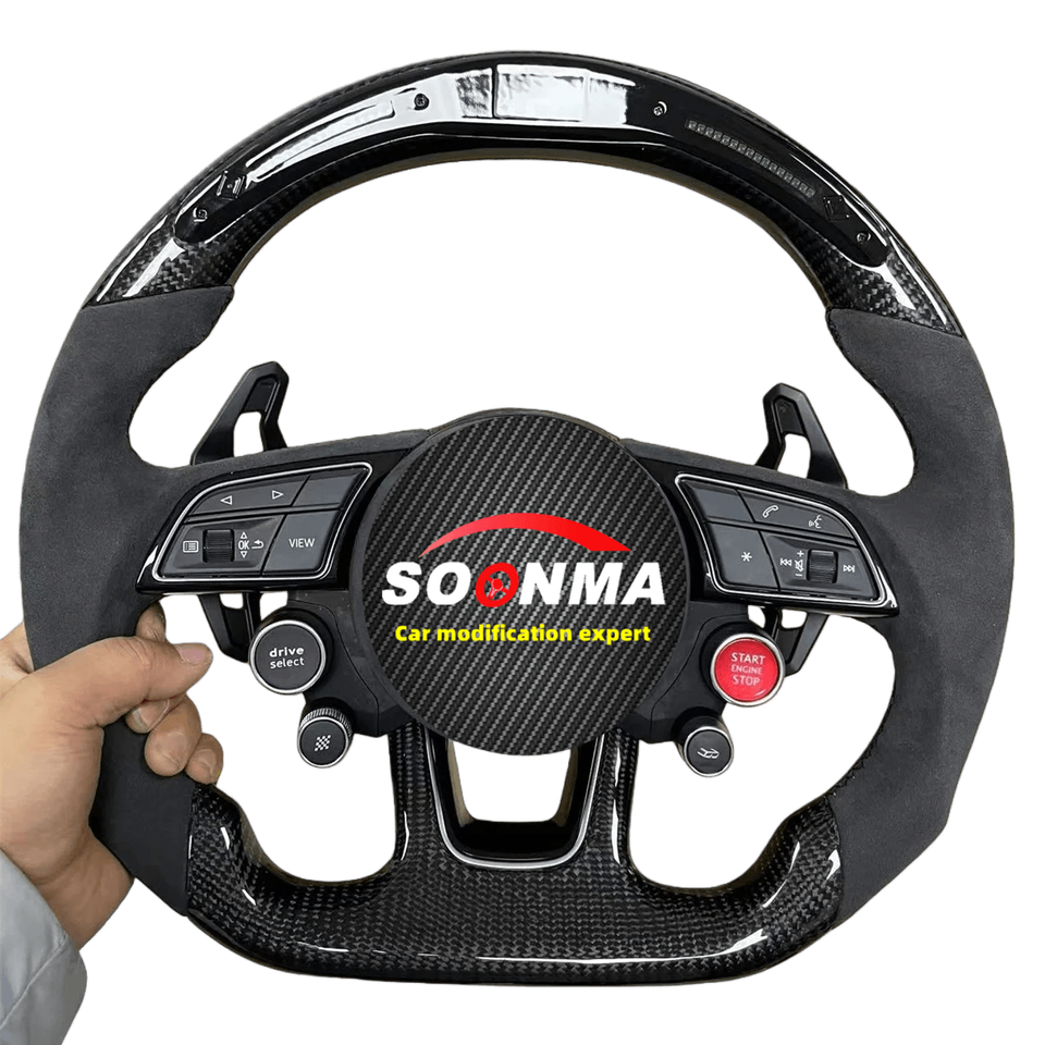 Volant en carbone semi-Alcantara S-Line avec bouton de démarrage pour Audi Q8 SQ8 A3 A4 B9 A5 B8 A6 C7 A7 S3 S4 RS3 RS5 RS7 RS6 C8