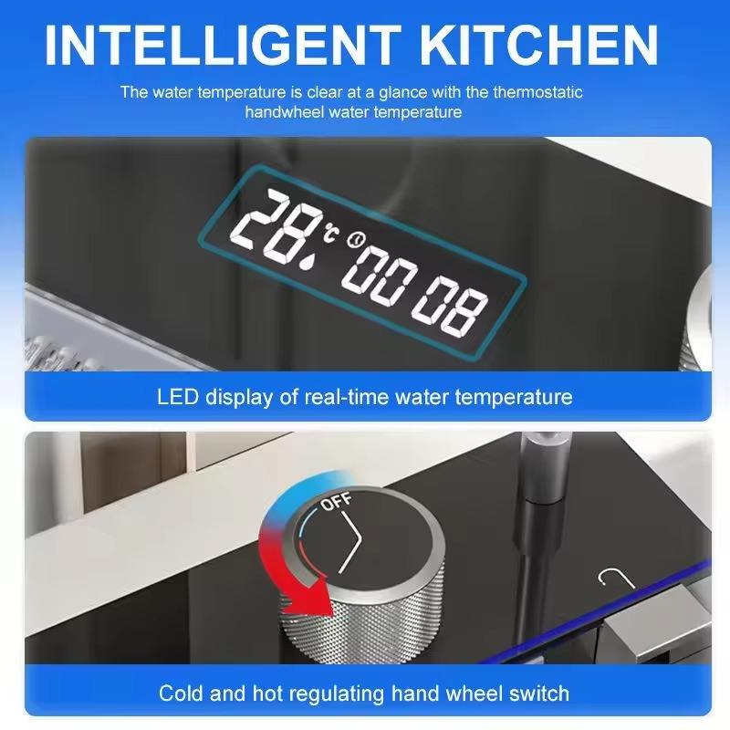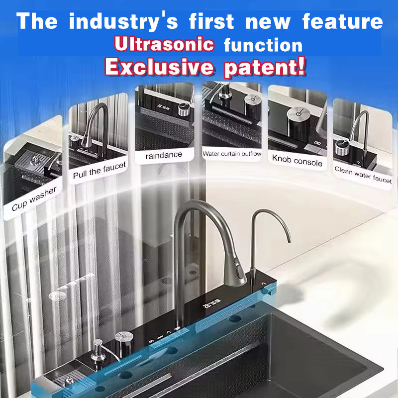 Avec fonction ultrasonique Lave-vaisselle Qualité Multifonction Moderne Smart Waterfall Acier Inoxydable 304 Évier Cuisine Éviers Cuisine
