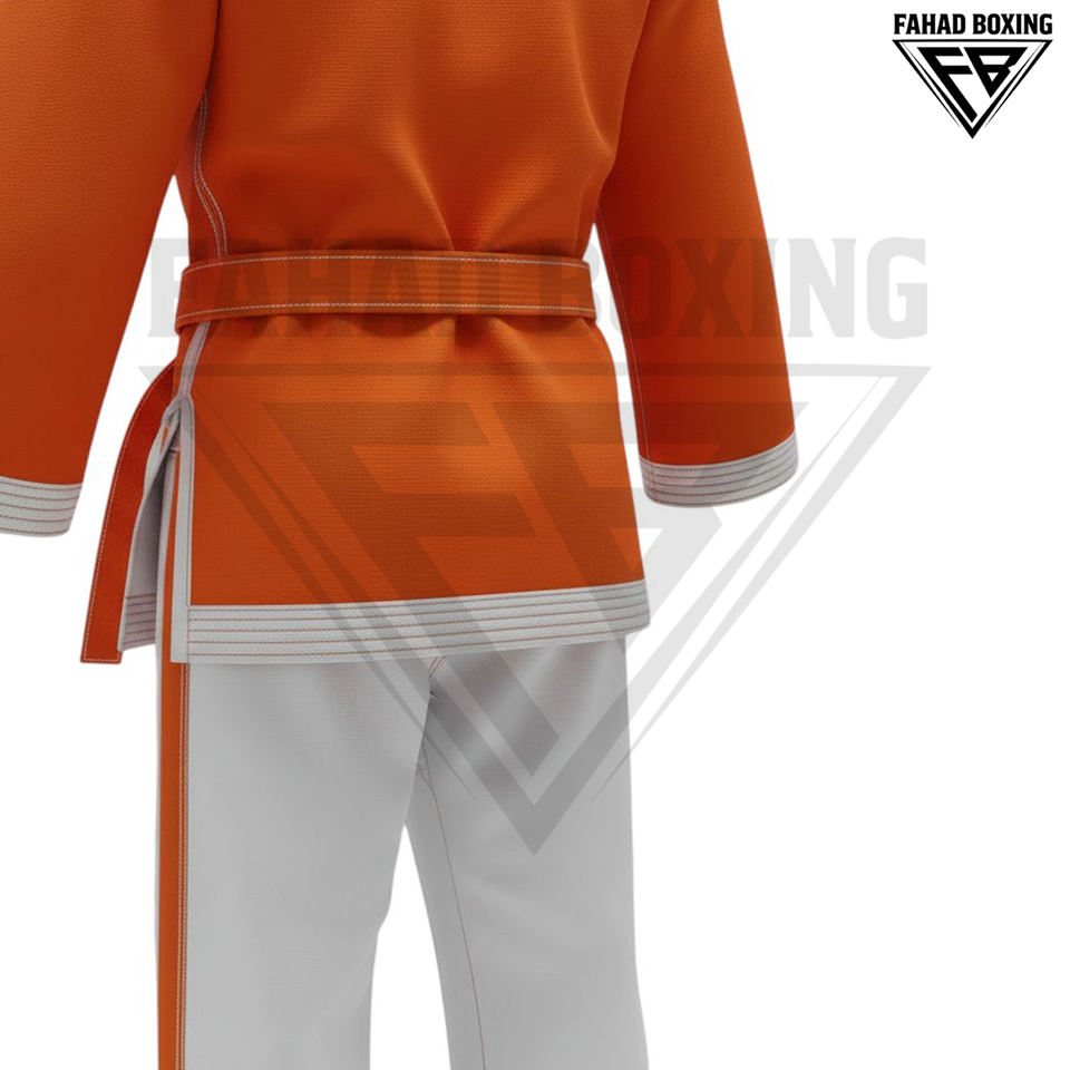 Pantalon d'entraînement de karaté et arts martiaux en polycoton, personnalisé, respirant, léger, durable, coupe évasée, imprimé orange, prix de gros