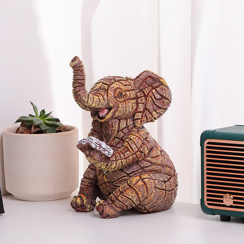 Figurines décoratives Witt en résine peintes à la main, éléphant lisant un livre, pour la maison et le jardin