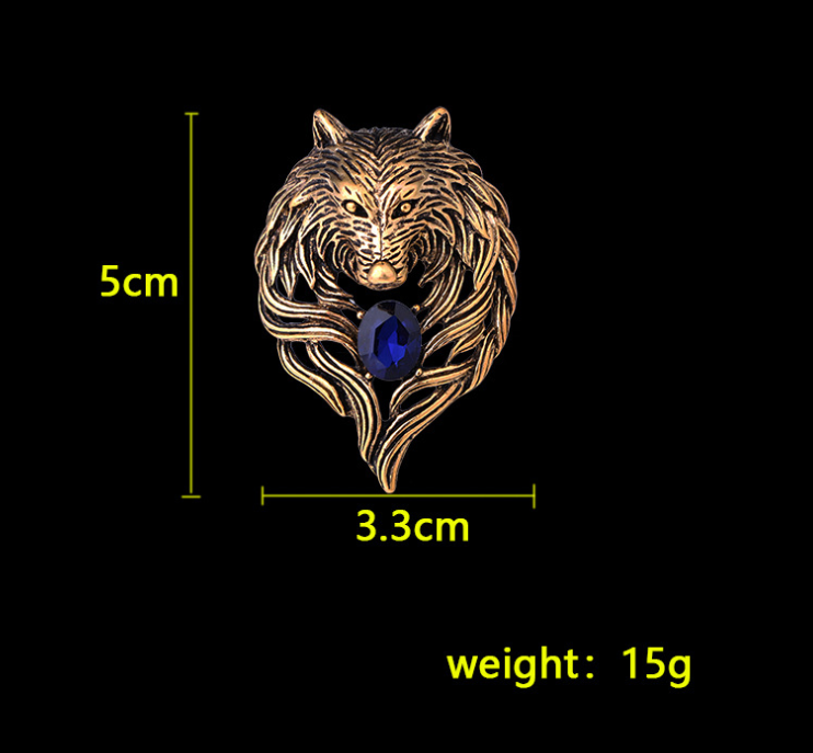 Wolf Alloy Brooch Pin with Crystal Rhinestone Antique Gold & Silver Finish Wedding Engagement Plating