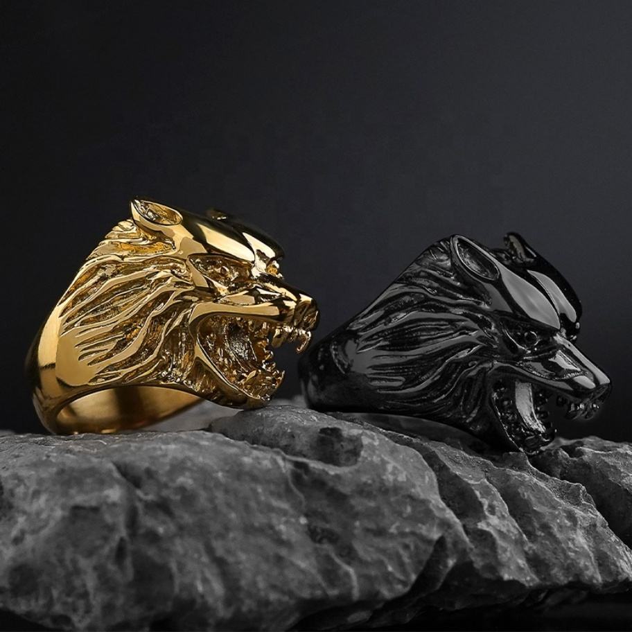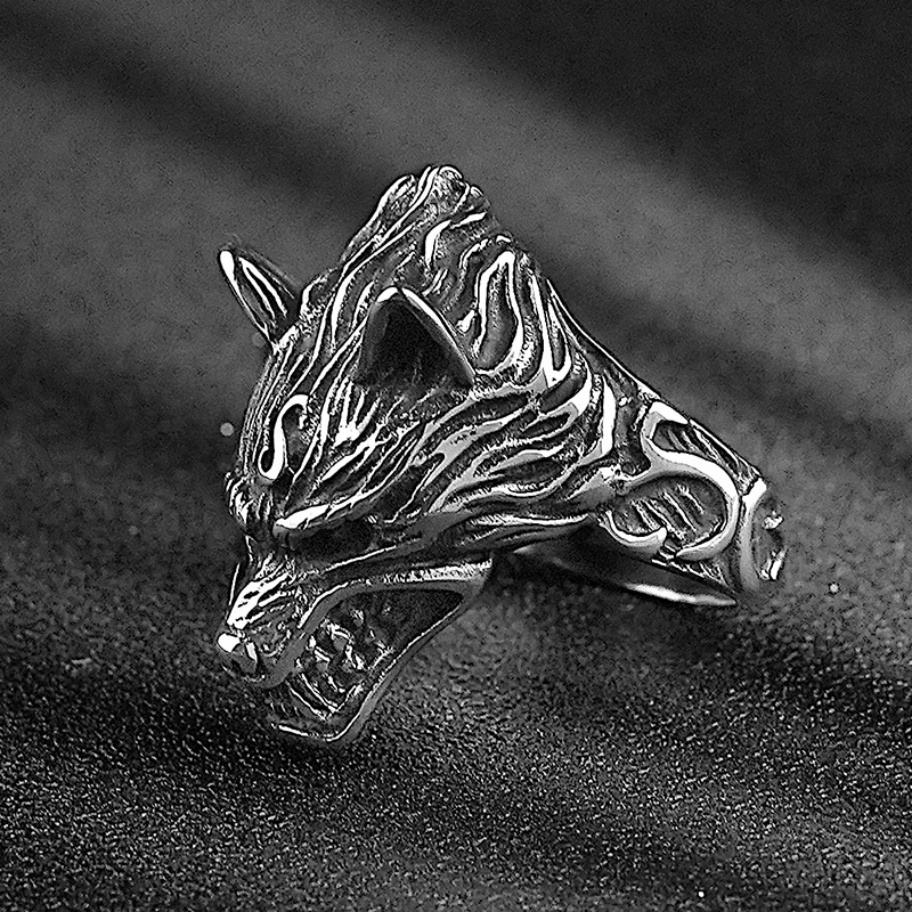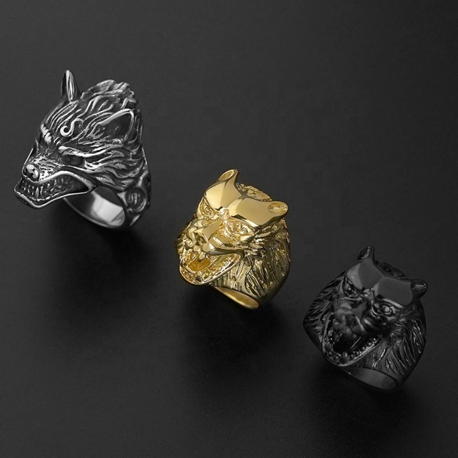 Bague Hip Hop en Acier Inoxydable pour Hommes, Motif Loup, Sertissage Bezel, Accessoires Biker Viking, Bijoux Acero Inoxidable Anillos