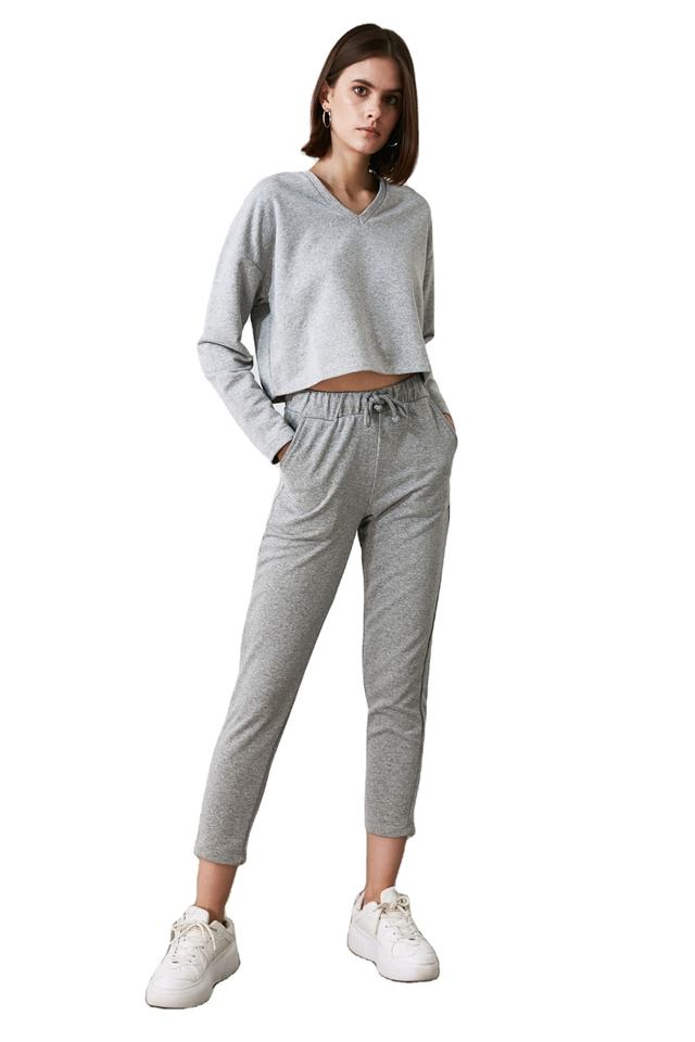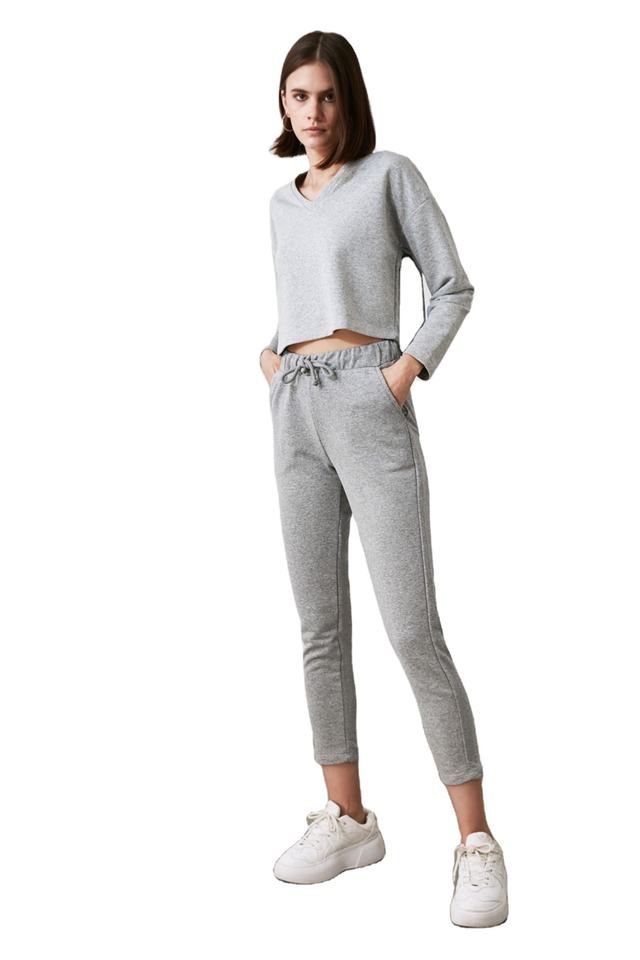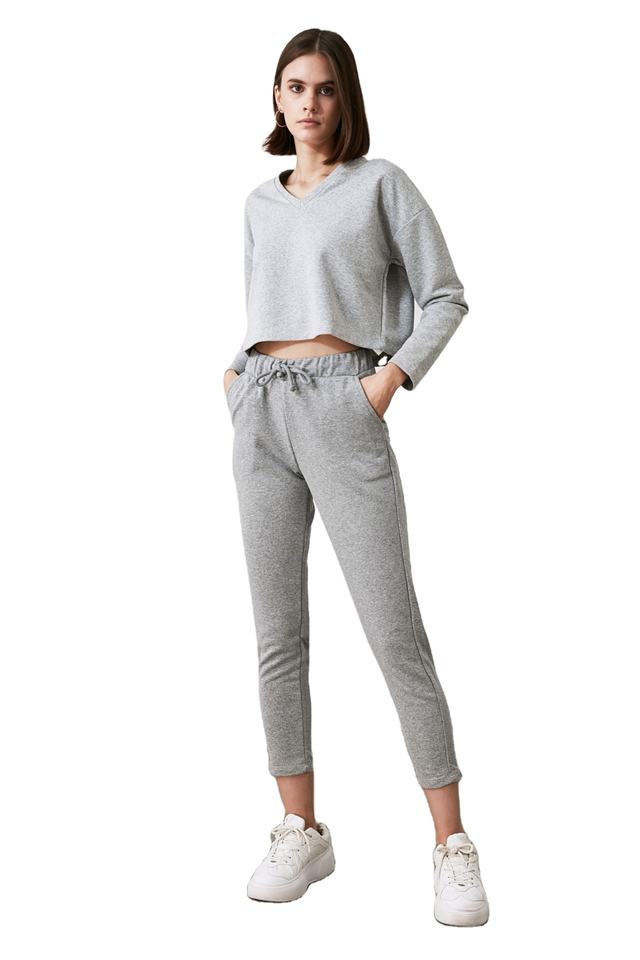 Ensemble de survêtement en molleton de coton uni pour femme, col en V, coupe classique, sweat-shirt à manches longues