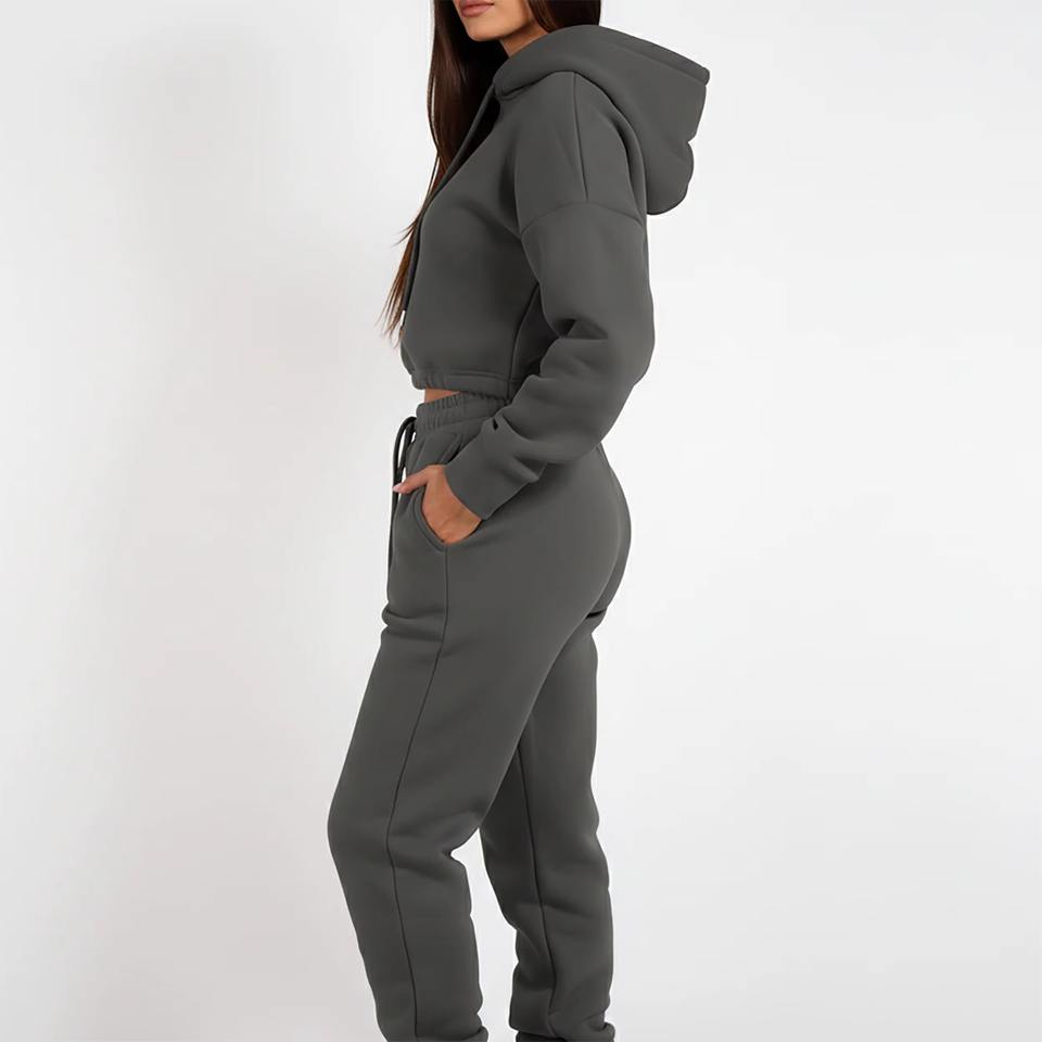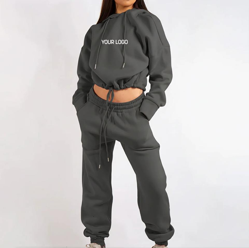 Ensemble de survêtement Y2K 2 pièces pour femme avec logo personnalisé, sweat à capuche en velours d'hiver zippé et pantalon de jogging au-dessus du genou avec bande latérale