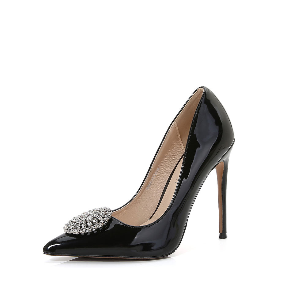 Nom du produit:Dames 5 pouces talons cuir verni cercle boucle pompes