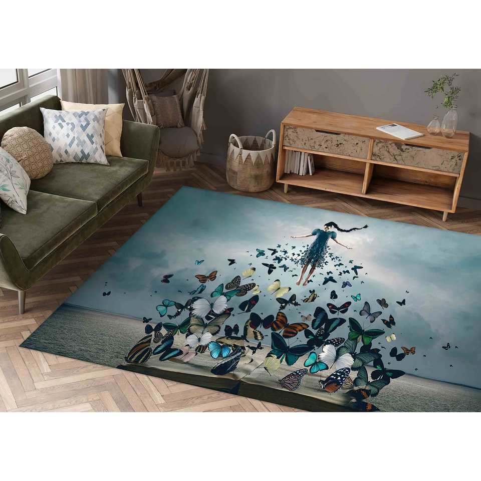 Tapis Femme et Papillons : Art Moderne, Décoration de Salon, Tapis Doux Non Tissé